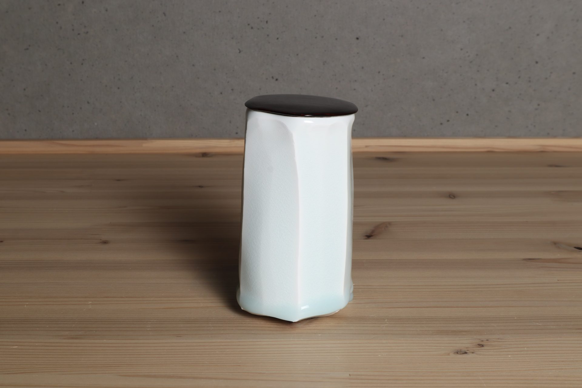 加藤委さんの青白磁面取湯呑 溜塗蓋付です。やや大振りな面取り湯呑に、溜塗蓋をオリジナルで誂えた蓋物です。中に何を入れるか、どう活かして楽しむか・・・を探してみて下さい。蓋の制作は野澤寛さん(新潟市)です。