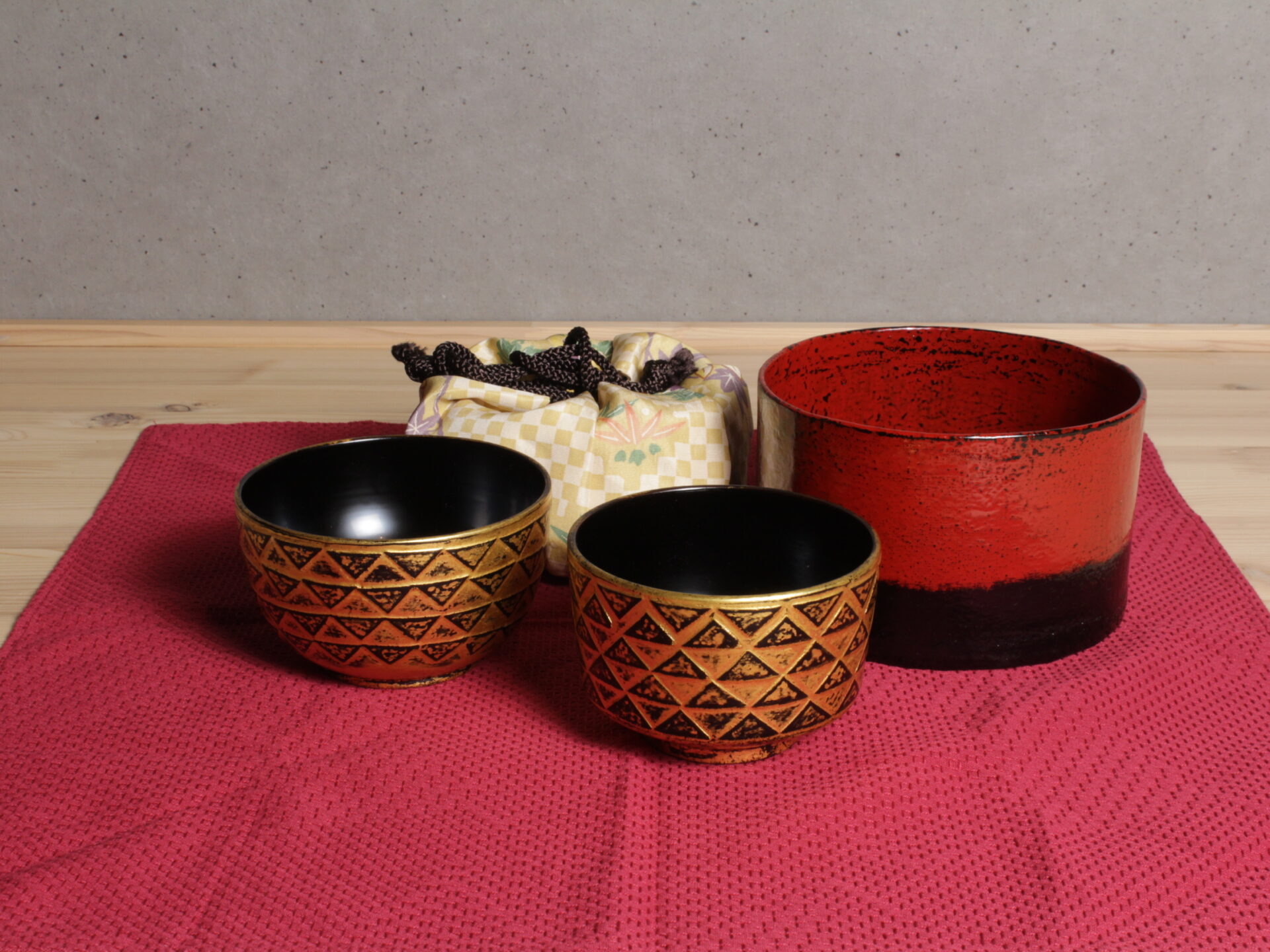 | サイズ | 建水:径14.7 x H9.1 (cm) 茶碗:径11.5 x H6.9 (cm) 茶碗:径10.5 x H7.1 (cm) |