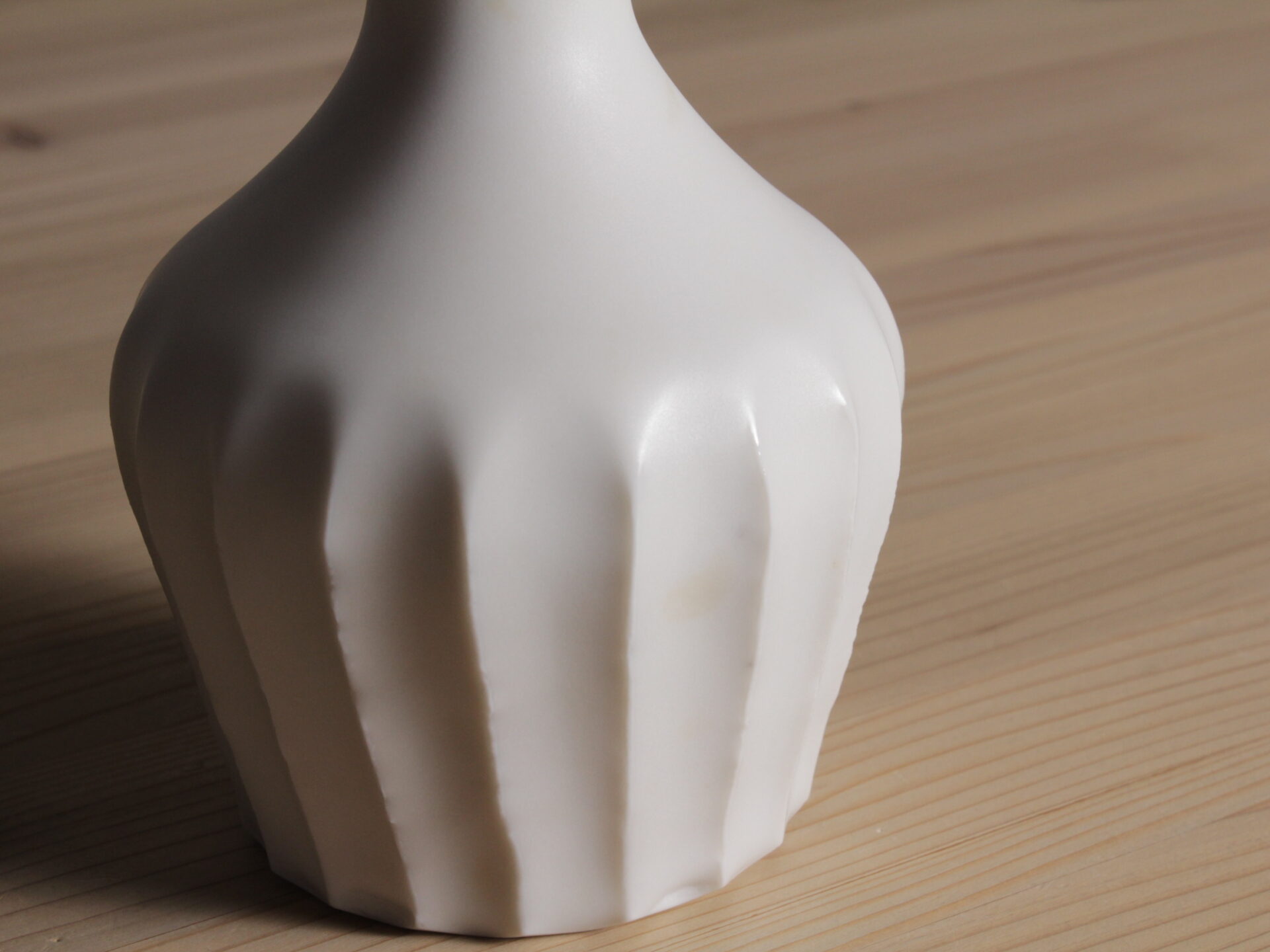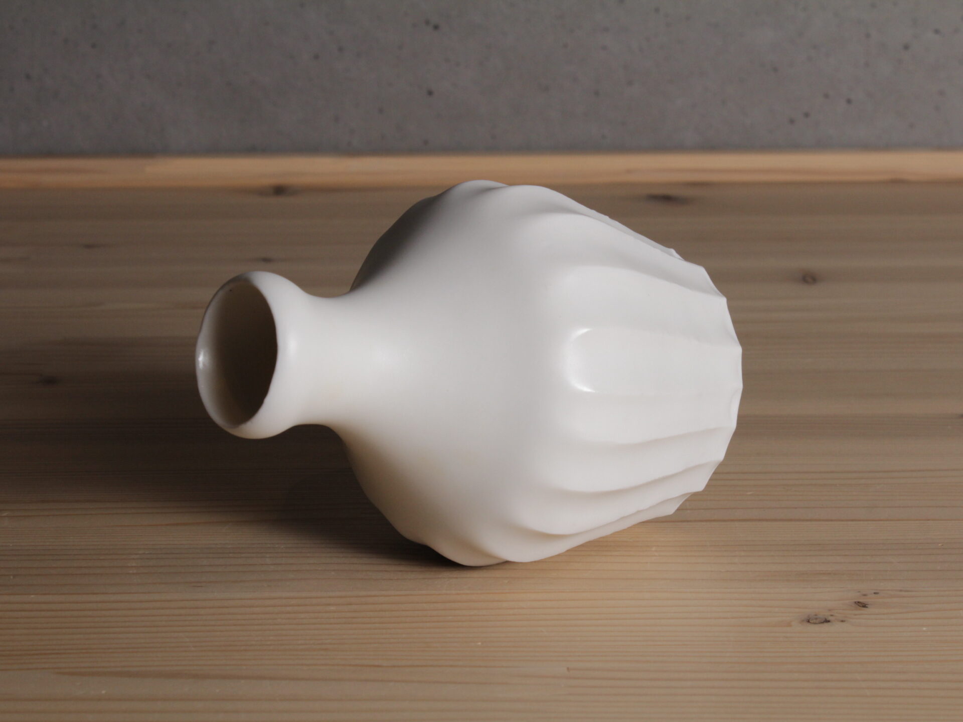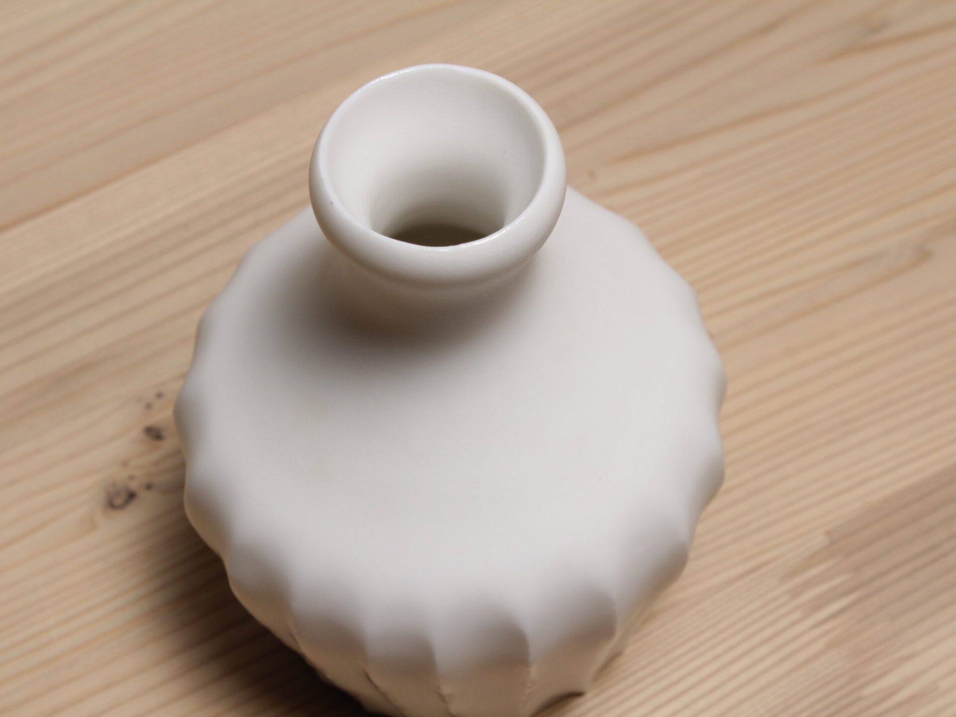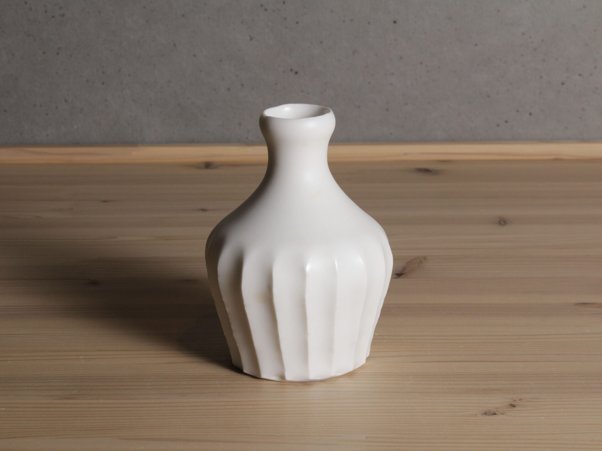 久岡冬彦さんの白磁鎬徳利です。旧作ですが未使用品です。力強い鎬が印象的な無骨な佇まいの白磁徳利です。